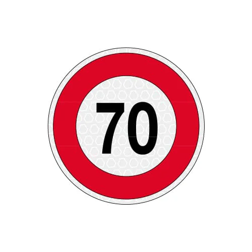 70 km/h Disco adesivo da 20cm di diametro con limite di velocità in materiale 3M riflettente, omologato EU, a norma Art.142 codice della strada.