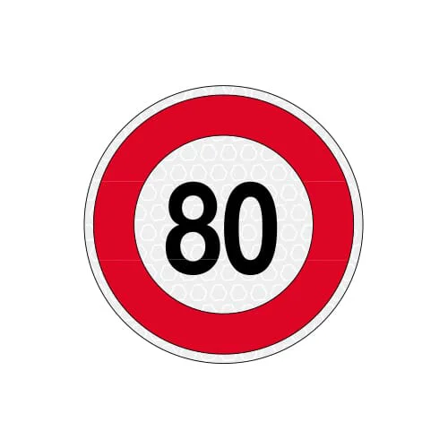 80 km/h Disco adesivo da 20cm di diametro con limite di velocità in materiale 3M riflettente, omologato EU, a norma Art.142 codice della strada.