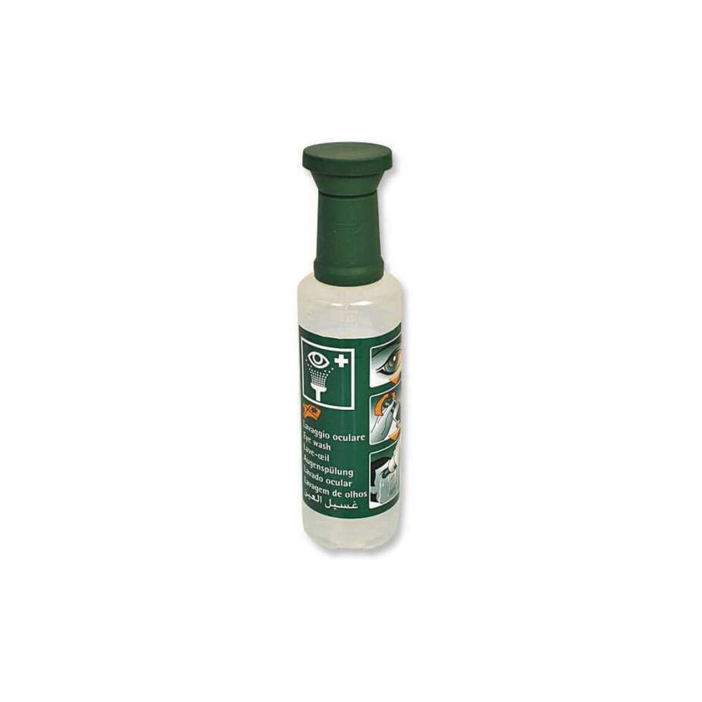 Flacone di soluzione di cloruro di sodio 0,9% per il lavaggio oculare d’emergenza.